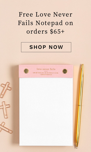 Free Desktop Notepad - Love Never Fails on orders $65+